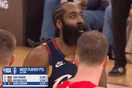 [流言板]哈登背身单打谢德碾进禁区,随后撤步后仰中距离稳稳命中